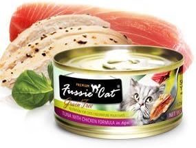 Amazon Com Fussie Cat Premium Grain Free Canned Cat Food 3 Flavor Variety Bundle 4 Tuna With Chicken 4 Tuna With Salmon And 4 Tuna With Ocean Fish 2 82 Oz Each 12 Cans Total Pet Supplies